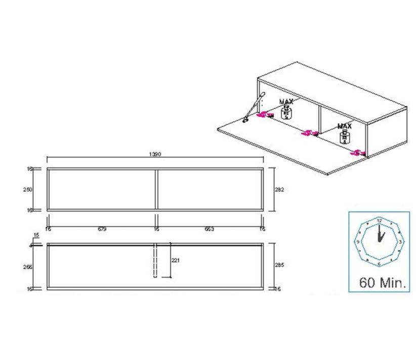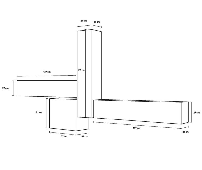 Set: 2 viseća vodoravna elementa, svaki dimenzija 140x31xH29 cm