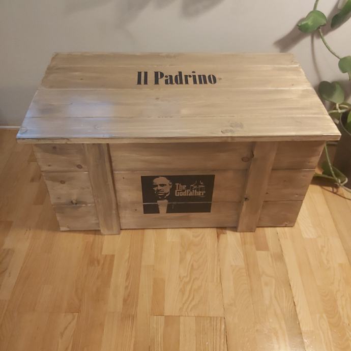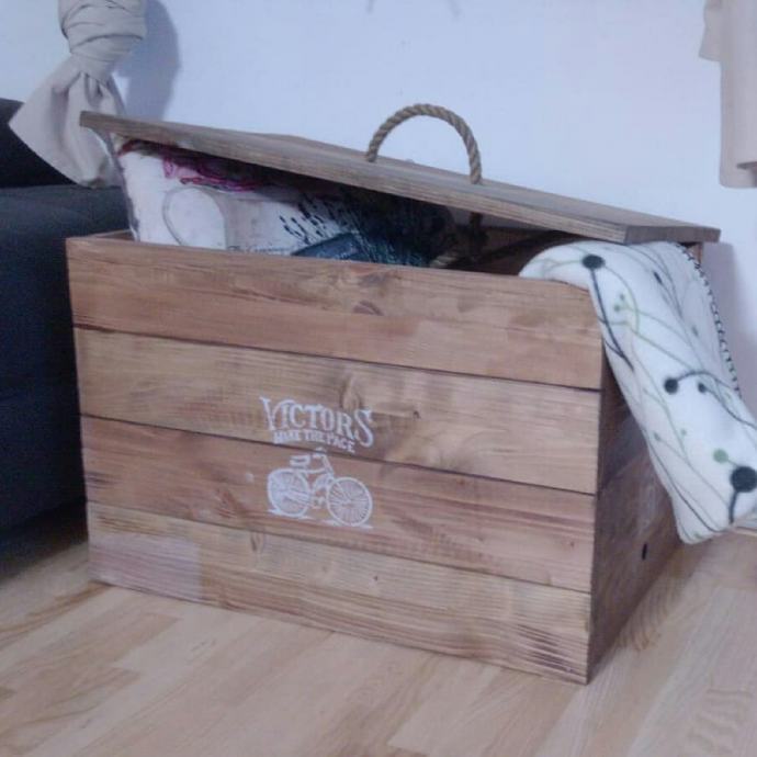 Ručno rađeni sanduk /kutija za drva, različite boje i izvedbe, mogući otisci transfer s papira. Dimenzije 80x40, visina 44 cm. Drvo smreka-jela
