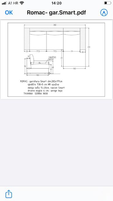 Prodajem kauč kupljen u Margaliću (rađen po narudžbi, plaćen 8000 kn) 2016. godine. Sjedište je dublje od standarda. Kauč je potrebno oprati i zašiti rub jednog jastuka.