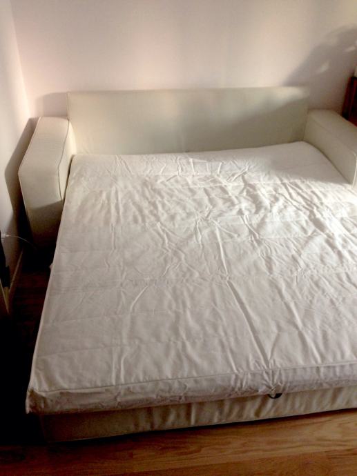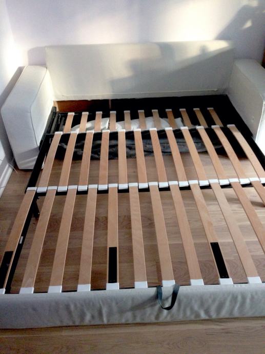 Trosjed iz Ikee, kupljen prije 2 godine. Očuvan, čist i potpuno ispravan, kao nov. Lako se razvlači u krevet, a navlaka se skida i pere. Navlaka je orsta svjetlo siva. Cijena novog je 4700 kn.