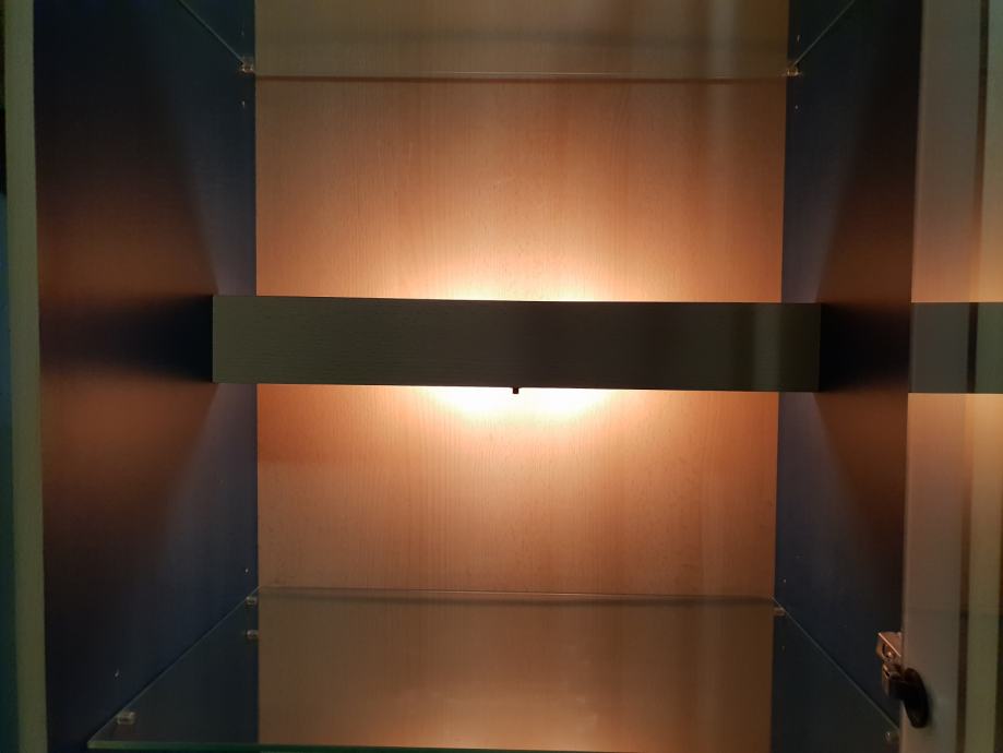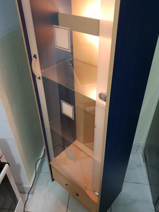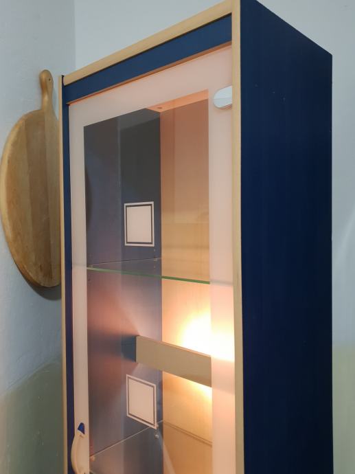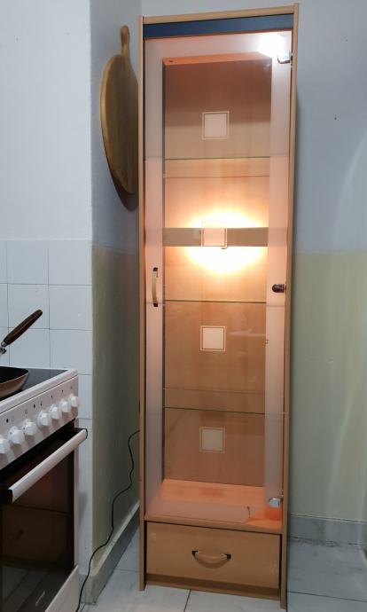 Staklena vitrina, moze biti dio dnevnog namjestaja, kuhinjskog ili djecjeg. Sadrzi i unutarnju rasvjetu na struju.