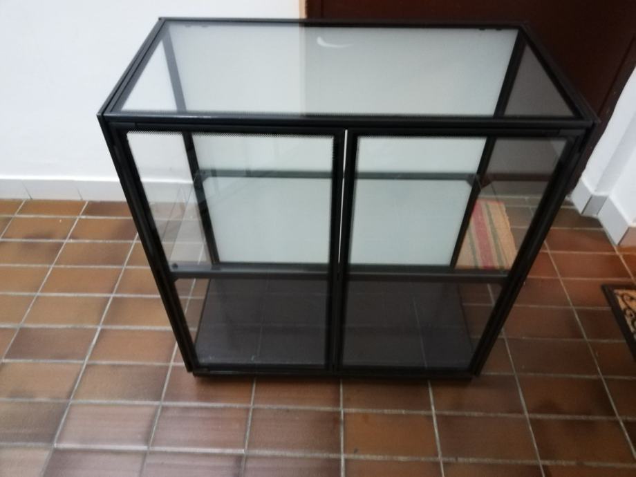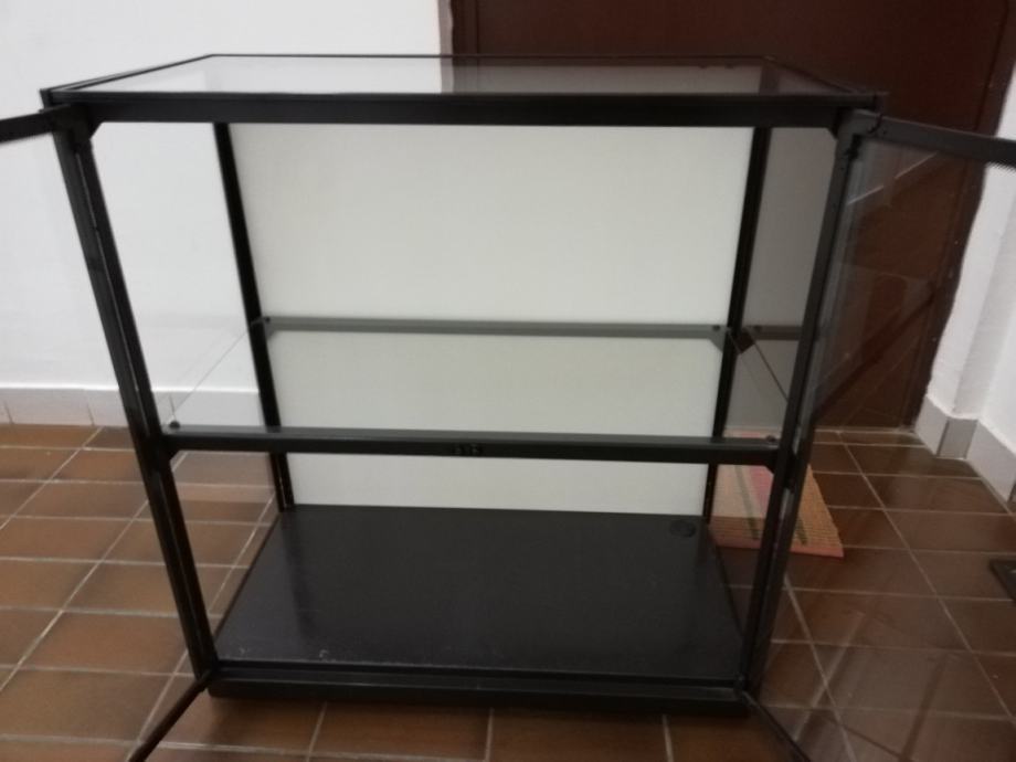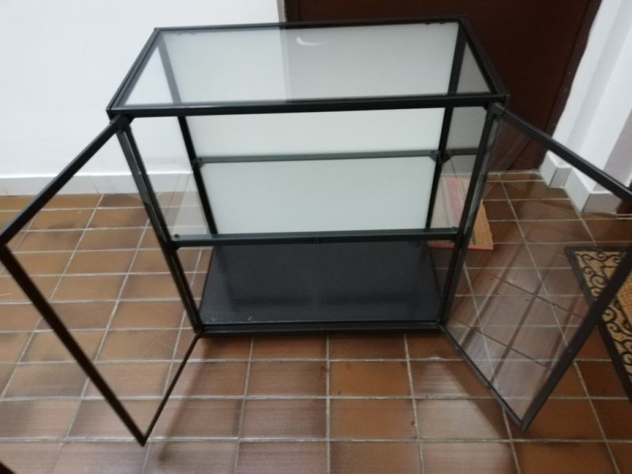 Ormarić staklo konstrukcija metal u odlicno stanju. Širina 39 cm. Visina 84 cm dužina 68. Cm