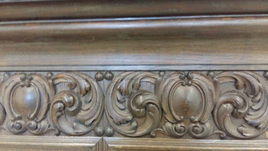 Neorenesansni ormar, ukrašen raskošnim rezbarijama, nogama u obliku lavljih šapa.