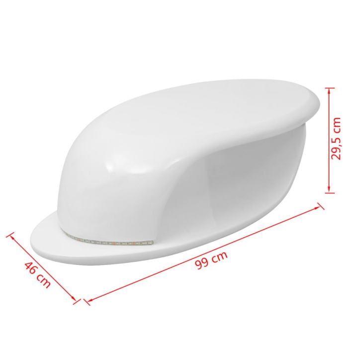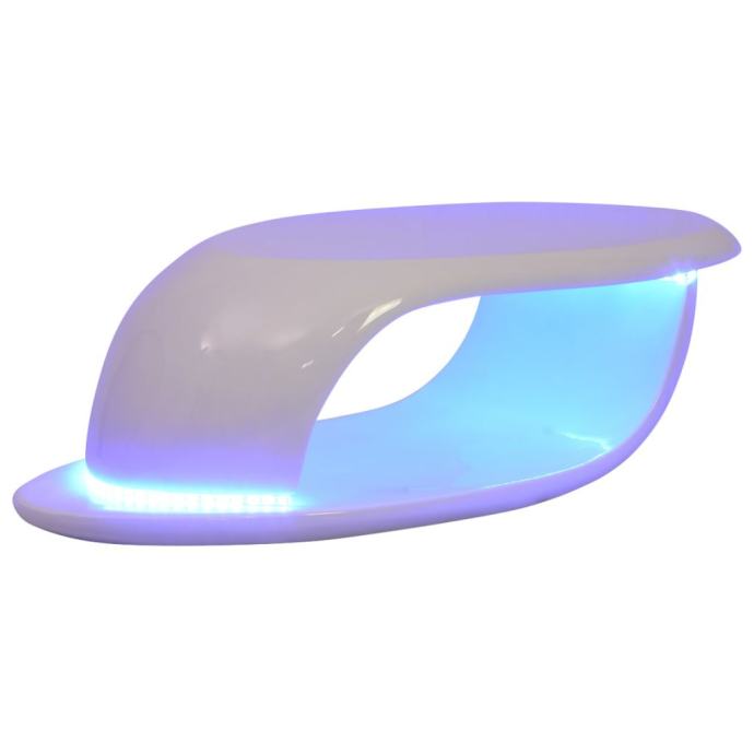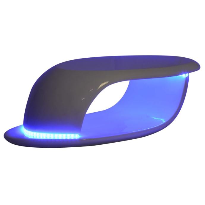 Dvodijelni stolić za kavu, izrađen je od staklenih vlakana sa bijelom obradom visokog sjaja. Čvrsta konstrukcija, čini ga vrlo izdržljivim. Stol za kavu ima LED svjetlosnu traku, što čini nevjerojatan efekat u tami. Ovaj moderni klub stolić, može se koristiti kao prikladna površina za vaše piće ili bilo koje druge potrebe. Veoma lako se održava, potrebna je samo čista, mekana, vlažna krpa.