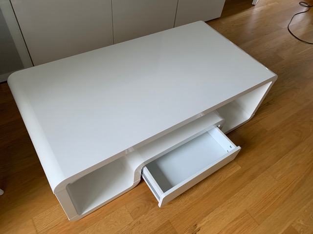 Bijeli lakirani stolić za kavu s jednom ladicom