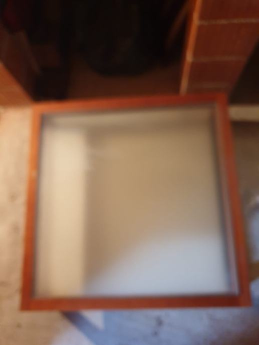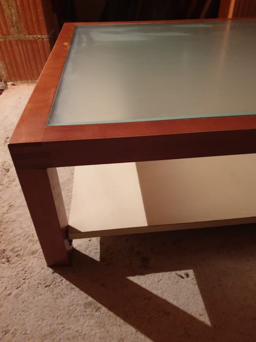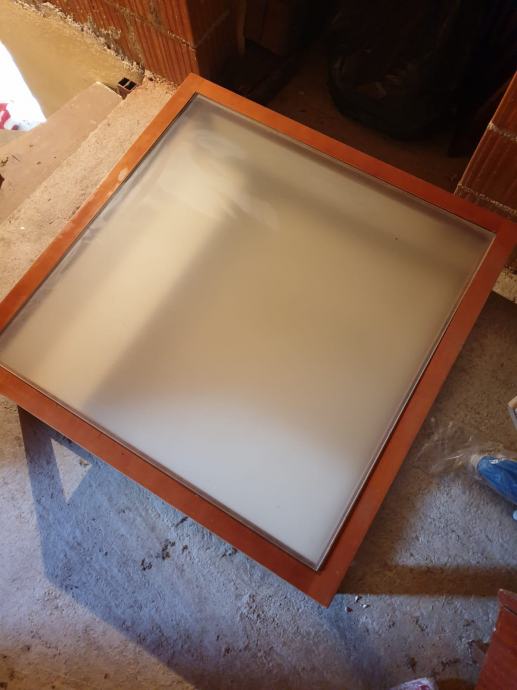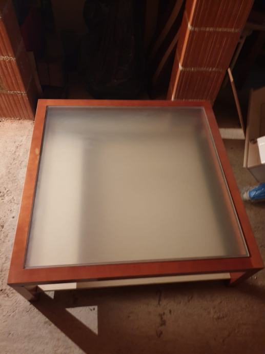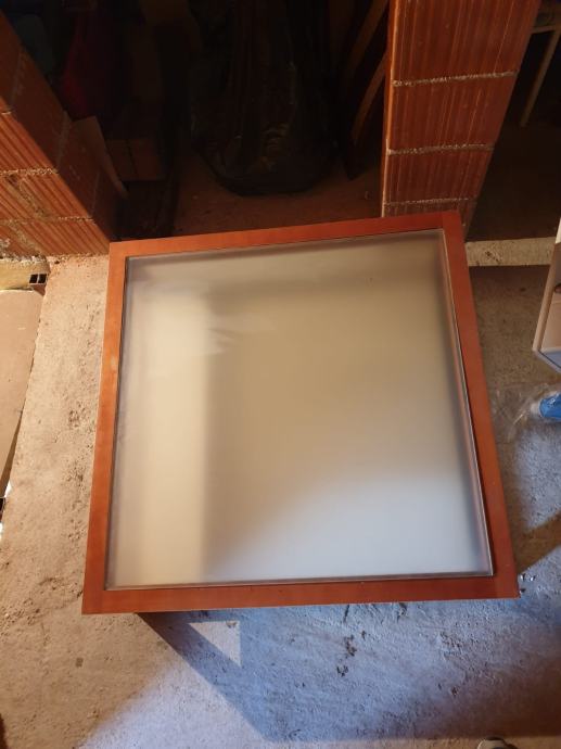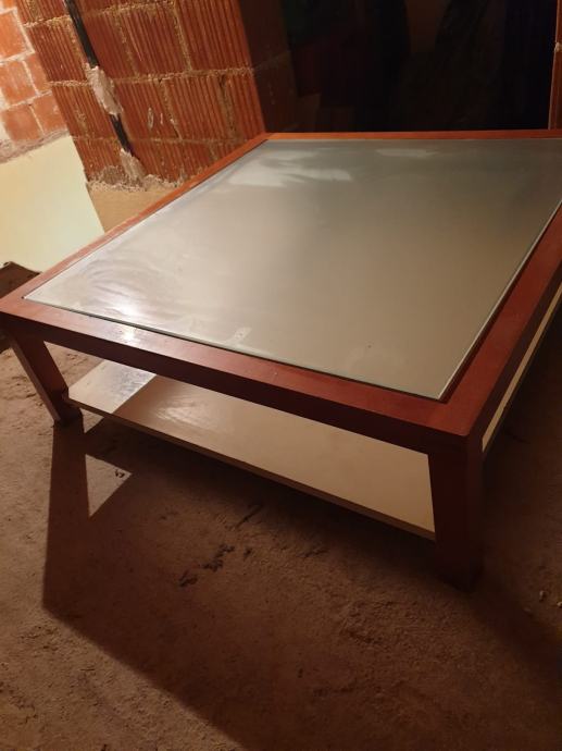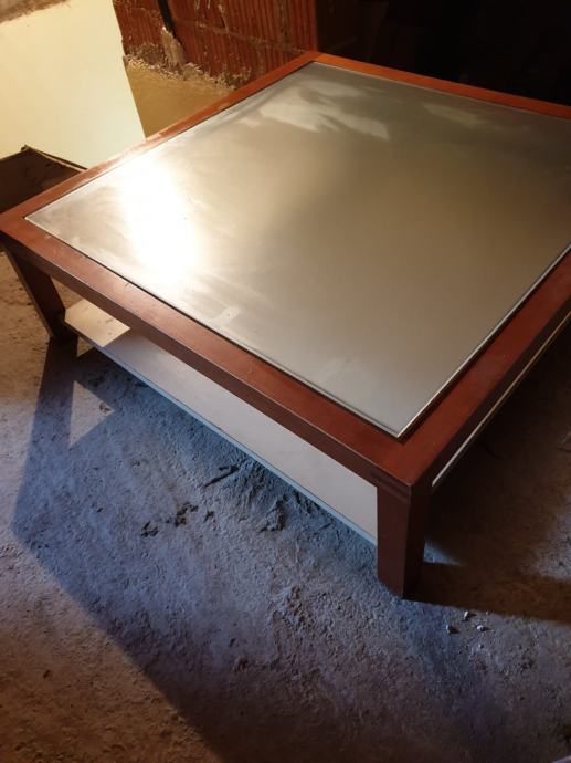 Efektan stol za dnevni boravak, staklo u sredini, sa donjom policom. Dimenzije 90x90x29cm