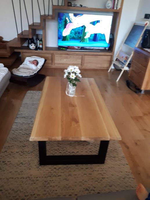Prodajem stolić za dnevni boravak od punog drva hrasta s prirodnim rubom i željeznim nogama profila 60*60 mm obojanim crnom, mat farbom. Dimenzije 120x70x45 cm, debljina gornje ploče 4 cm. Stol je unikatni i ručno rađen. Uljen bezbojnim, mat uljem u dva sloja. Spoj modernog i prirodnog ostavlja prostora da se idealno uklopi u razne interijere.