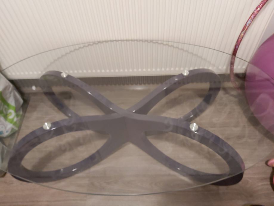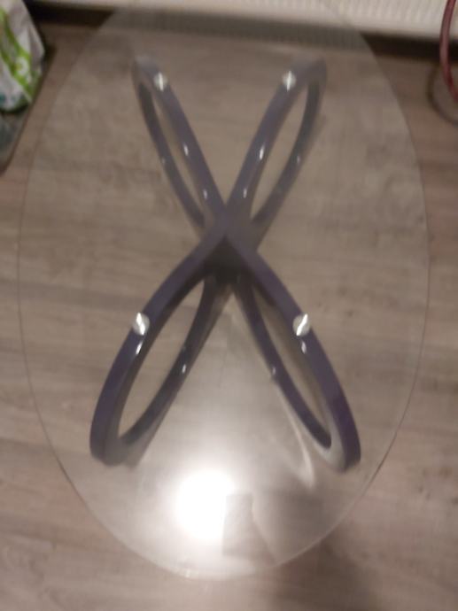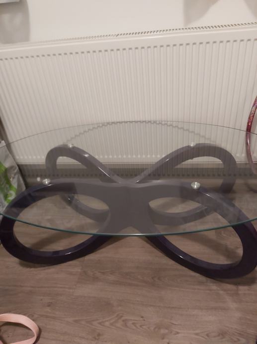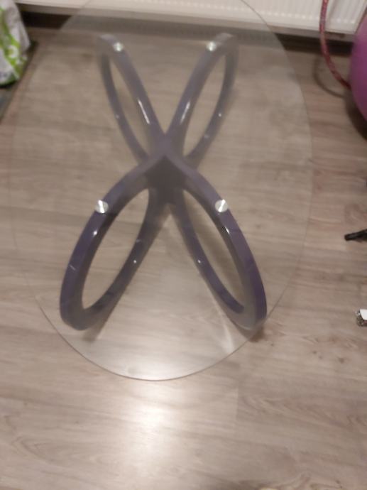 Stolic za dnevni boravak; gore staklo, noge u ljubicastoj boji... kratko.koristen, nije osteceni... kupljen u lesnini.