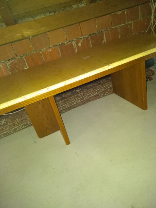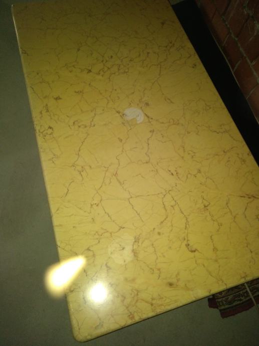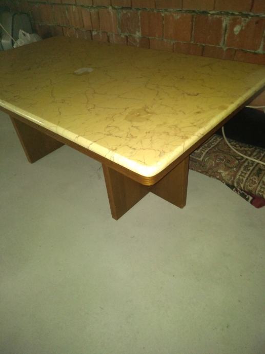 Prodajem masivni drveni stolić sa betonskom pločom, lakiranom - imitacija mramora. Dužina 125cm, širina 70cm, visina 5 cm. Na sredini je malo oštećenje laka promjera cca 2cm. Cijena je 95 eura. Preuzimanje u Zagrebu.