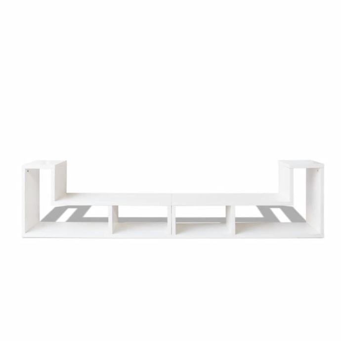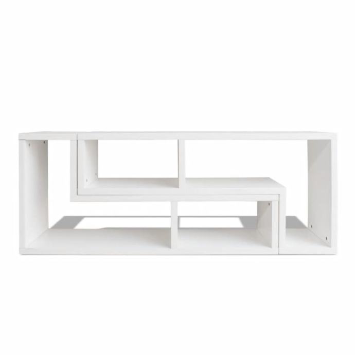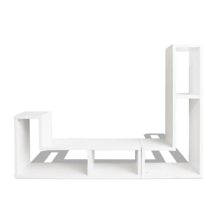 Čvrsta konstrukcija čini ovaj TV ormarić vrlo izdržljivim. Televizijski ormarić sastoji se od 2 police u obliku slova L, koje se mogu postaviti u različite konfiguracije. Velike police sa dovoljno prostora omogućuju vam da uredno postavite DVD player, igraću konzolu,prijemniike, medijske prijenosnike, ukrasne predmete itd.