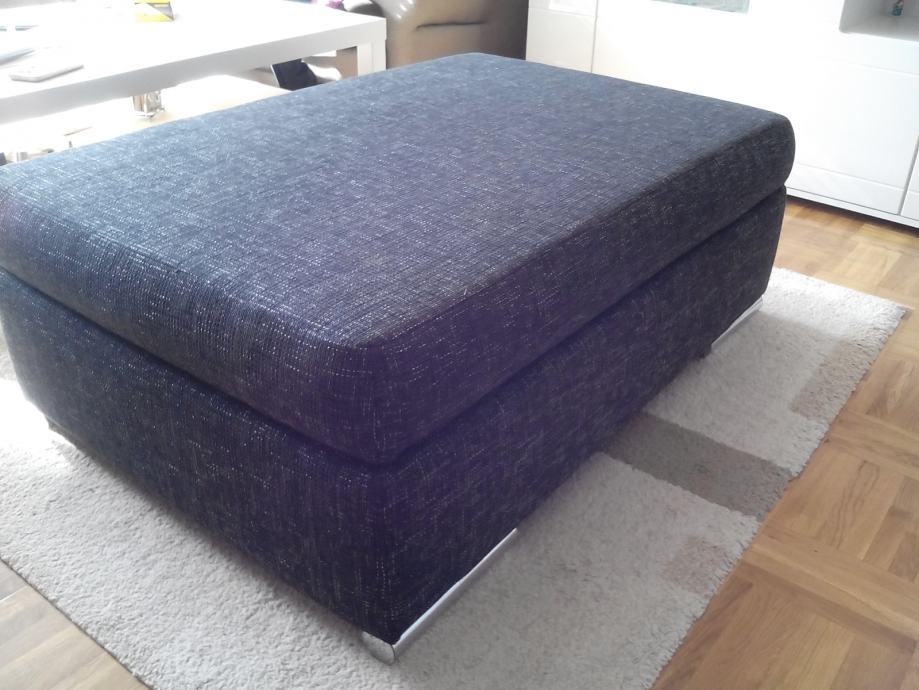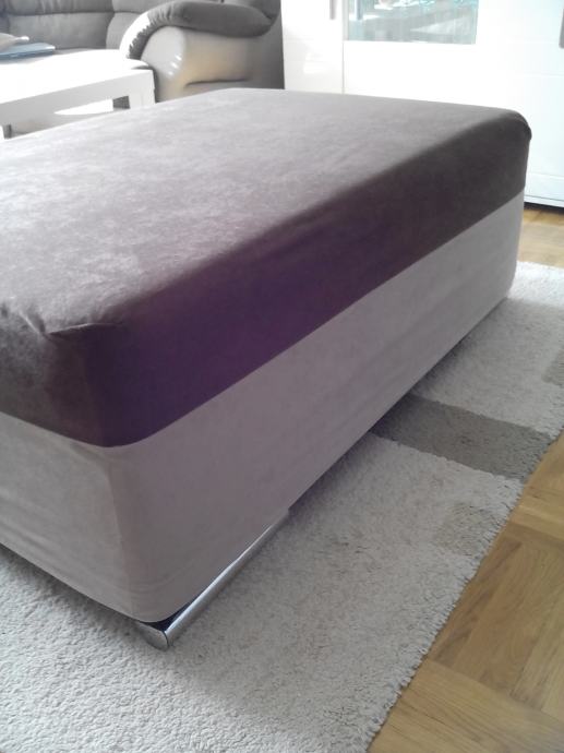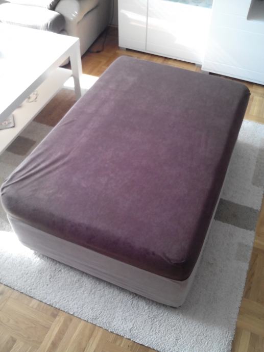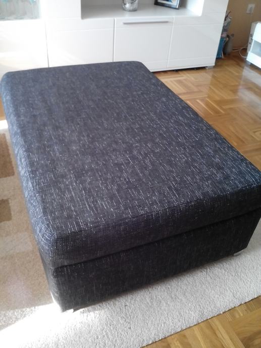 Veliki tabure dimenzija d: 115, v: 40, š: 80, korišten samo dva dana, tamne boje, sašivena i navlaka (pola smeđa pola krem). Prodajemo jer nam je ipak prevelik za dnevni boravak.