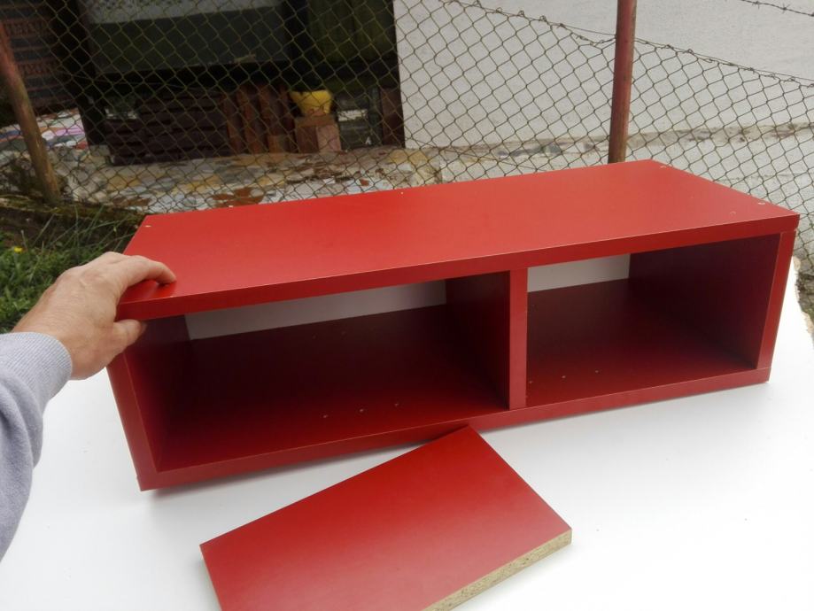 Zidna stalaža. Pregrade nisu fiksirarne, mogu se po želji ukloniti. Ima oko 7 kila. Poneka sitna oštećenja možete vidjeti na fotkama. Na sms nemogu odgovoriti, najbolje bi bilo da nazovete 099 687 5657 ili pošaljete poruku preko Njuškala.