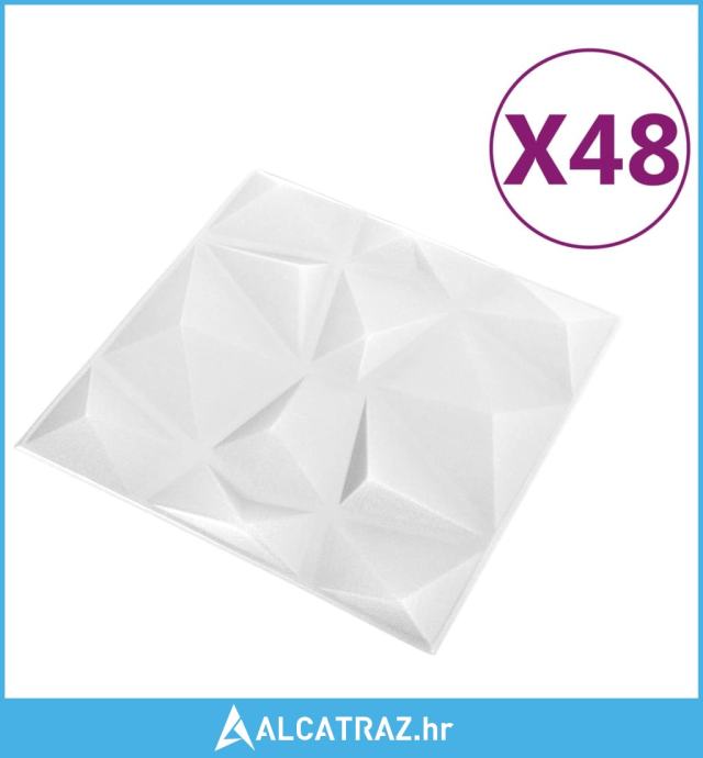 3D zidni paneli 48 kom 50 x 50 cm dijamantno bijeli 12 m² - NOVO