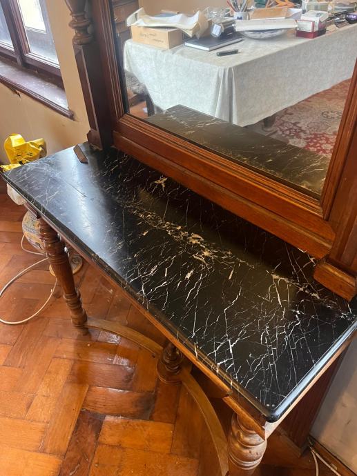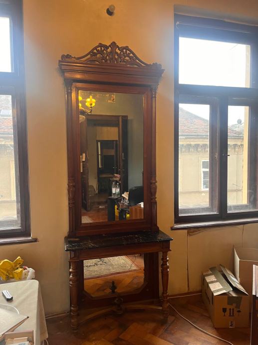 Antikno ogledalo, 19. st., kristalno staklo i mramor