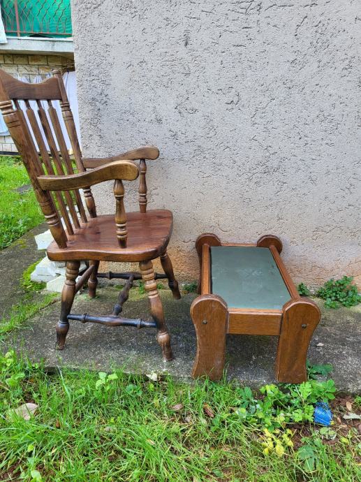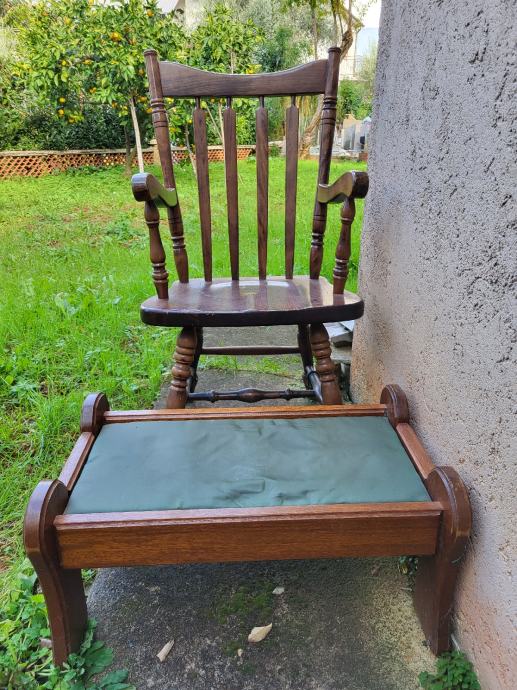 Drvena fotelja sa tabureom.