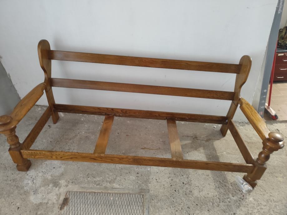 Prodajem set drvenih predmeta izrađenih od masivnog drva tople smeđe boje. U kompletu se nalaze drvena vrata za ormar (4 komada), 4 stolice te okvir trosjeda. Svi predmeti su izrađeni u istom stilu i boji pa lijepo idu zajedno. Okvir trosjeda je čvrste konstrukcije s dekorativno oblikovanim naslonima za ruke i leđa te tokarenim nogama. Stolice su kompaktne, s policom pri dnu, praktične za odlaganje. Vrata su solidne izrade, pogodna za zamjenu ili ugradnju u ormar odgovarajućih dimenzija.
