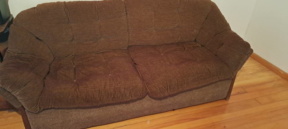 Prodajem 2 ista dvosjeda za dnevni boravak. Jedan ima ležaj na izvlačenje al bez madraca, treba stavit novi nadmadrac. Na objema se skidaju sjedišta, puno drvo jako udobni. Cijena za oba je 250 €.