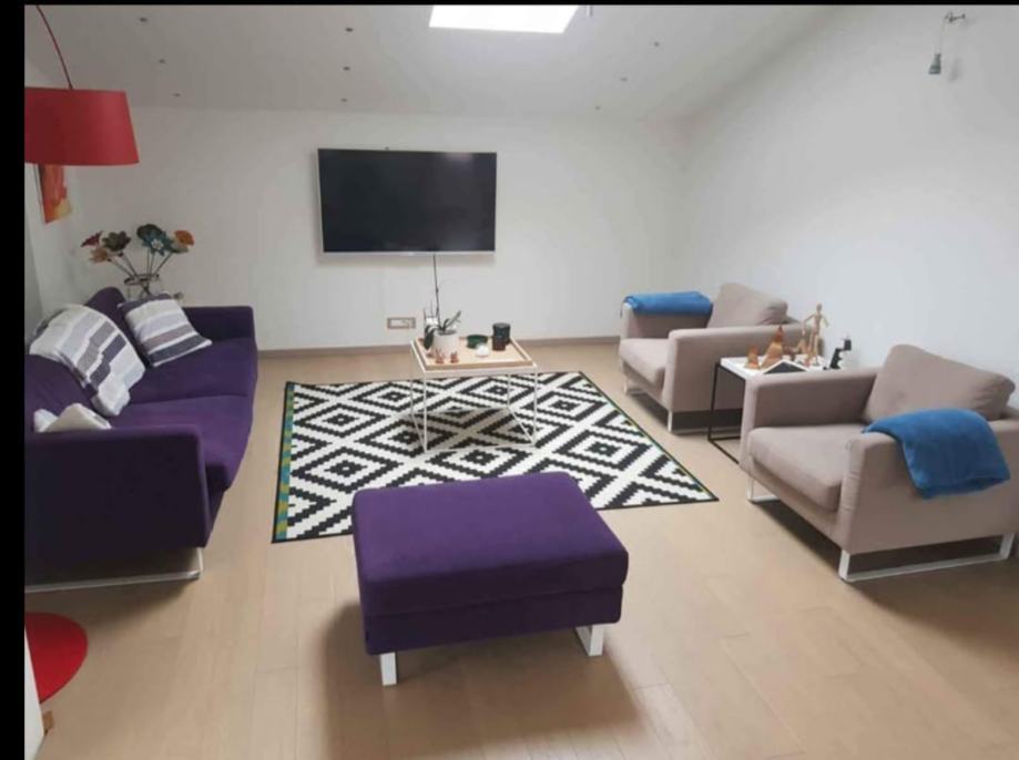 Prodajem trosjed, tabure, 2fotelje. Modernog izgleda i dizajna. Tkanine su od materijala koji je periv u perilicu, te se može skinuti uz patent. Stanje top, kao novo. Korišteni minimalno, te se prodaje zbog selidbe u drugi prostor, te ne odgovara dimenzijama.