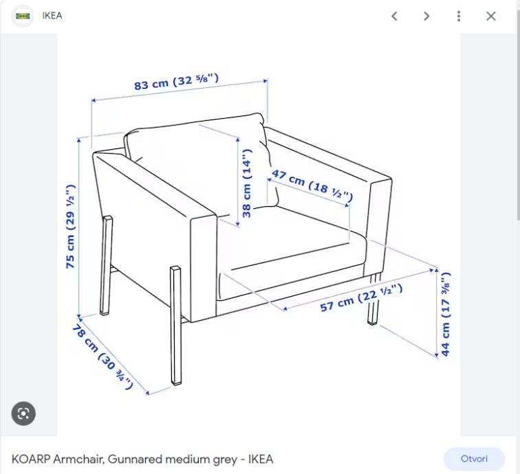 Dimenzije fotelje su na fotografiji.