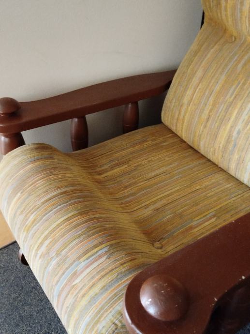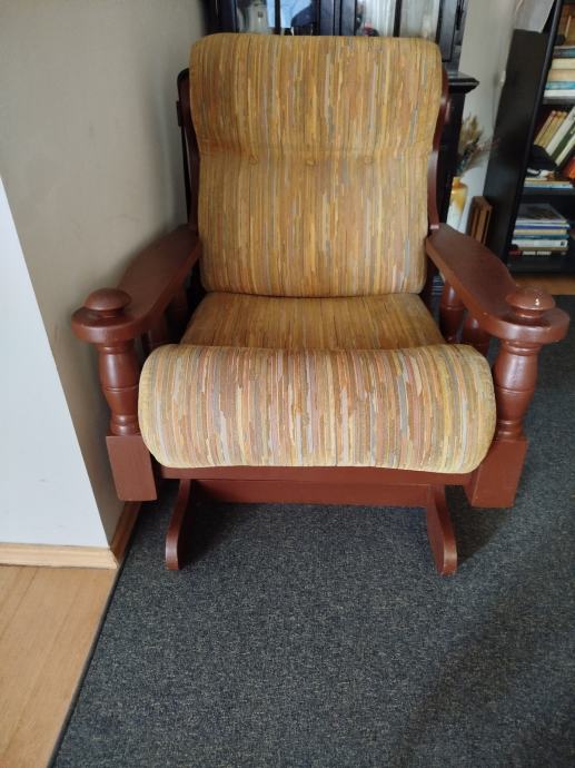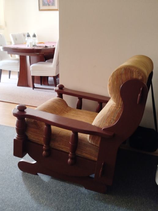 Fotelja od masivnog drveta za ljuljanje. Novo tapecirana.