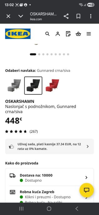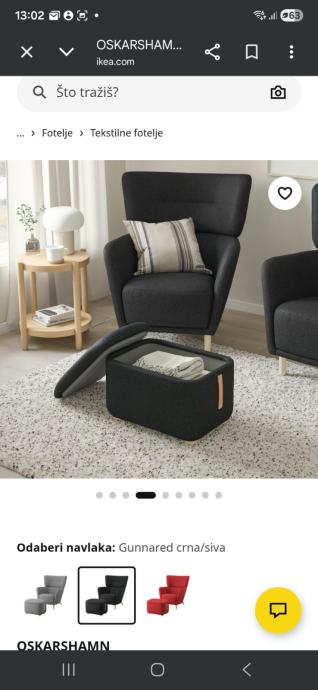 Prodajem IKEA fotelje OSKARSHAMN s tabureom. Radi se o naslonjaui s podnožnikom u kombinaciji tkanine Gunnared crna/siva.Kupljeno prije par mjeseci stanje kao novo.