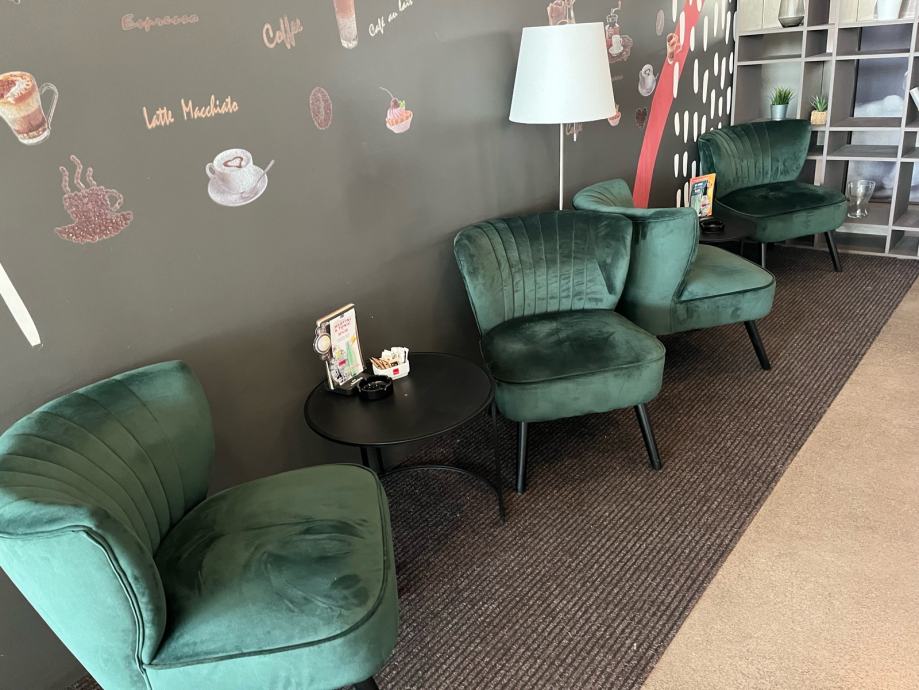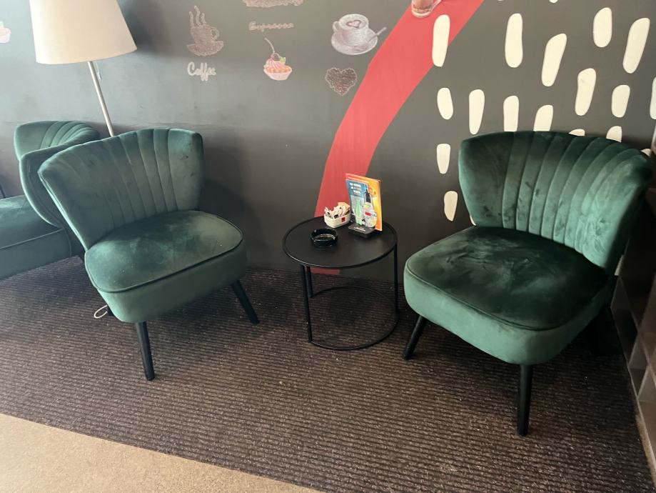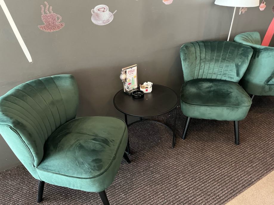 4 baršunasto zelene fotelje kao nove plus 2 stolica i Lampa