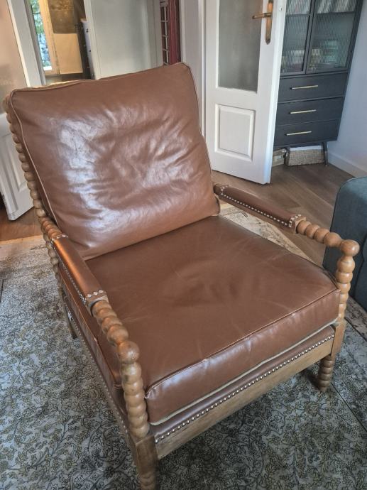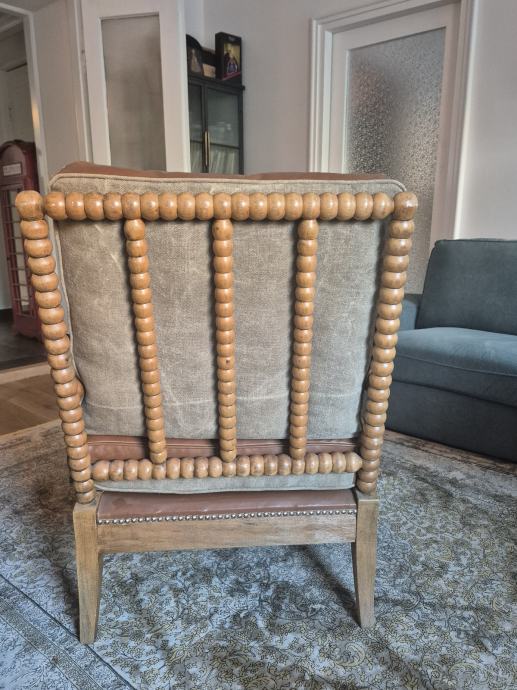 Dizajnerska fotelja,kombinacija hrastovina.-koža prodajem.