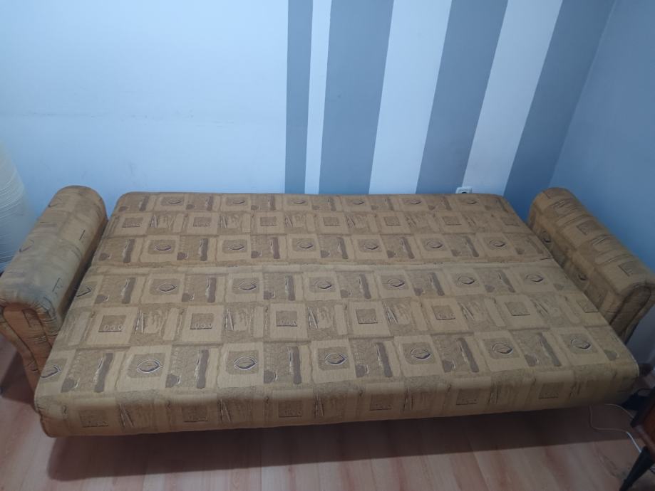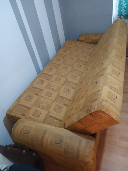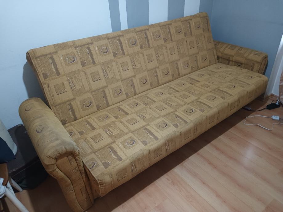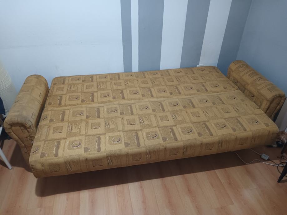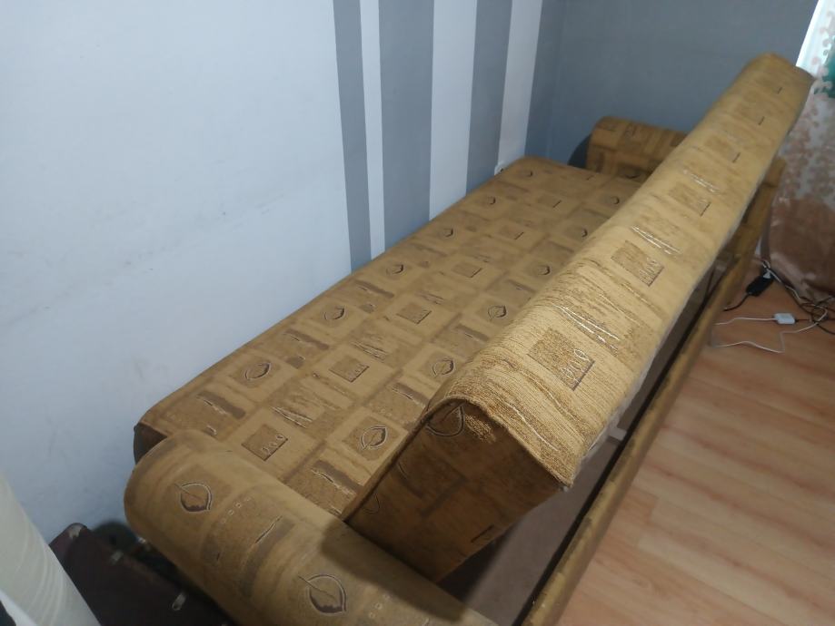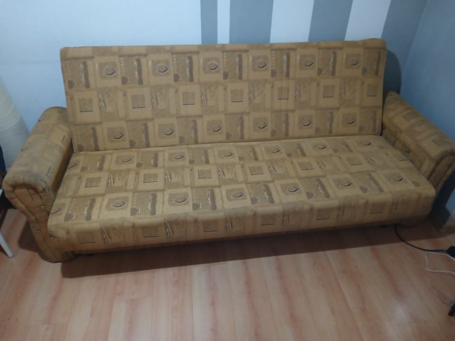 Prodajem KAUČ-TROSJED na razvlačenje u odličnom stanju,jako malo korišten,bio kao rezervni ležaj u vikendici,kvalitetna izrada nade in Makedonija,jednostavno se razvlači u udoban ležaj a ima i spremište(sanduk) za posteljinu. Bez ikakvih oštećenja,puno drvo,masivan i jako težak,pogodan za upotrebu kao udoban ležaj. Dimenzije u sklopljenom stanju kao trosjed su 220x110 cm a kao ležaj su dimenzije 190x130 cm. Kvalitetan klik-klak mehanizam,platno sa reljefnim uzorkom,sve sačuvano,ispravno i jako malo korišteno. Nalazi se u prizemlju stana pa se može lako transportirati,prije par godina kupljen i plaćen 1.599 kuna,proizvodnja Makedonija. Prodajem ga zbog preseljenja,nakon pregleda ispravnosti.