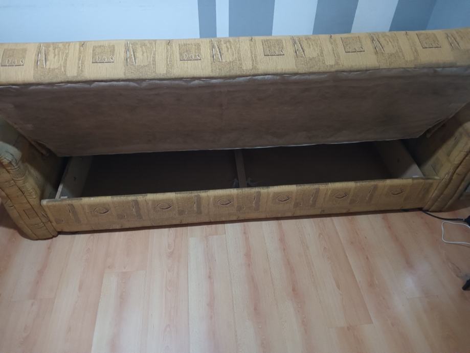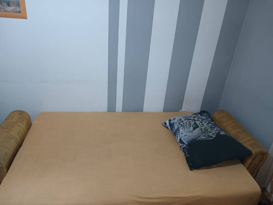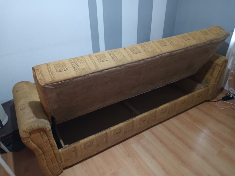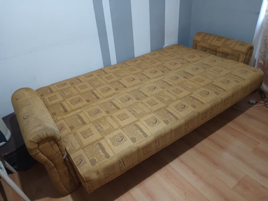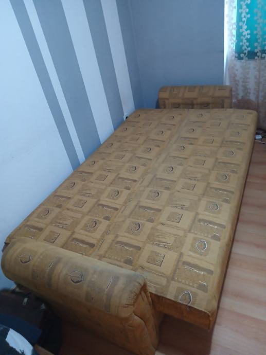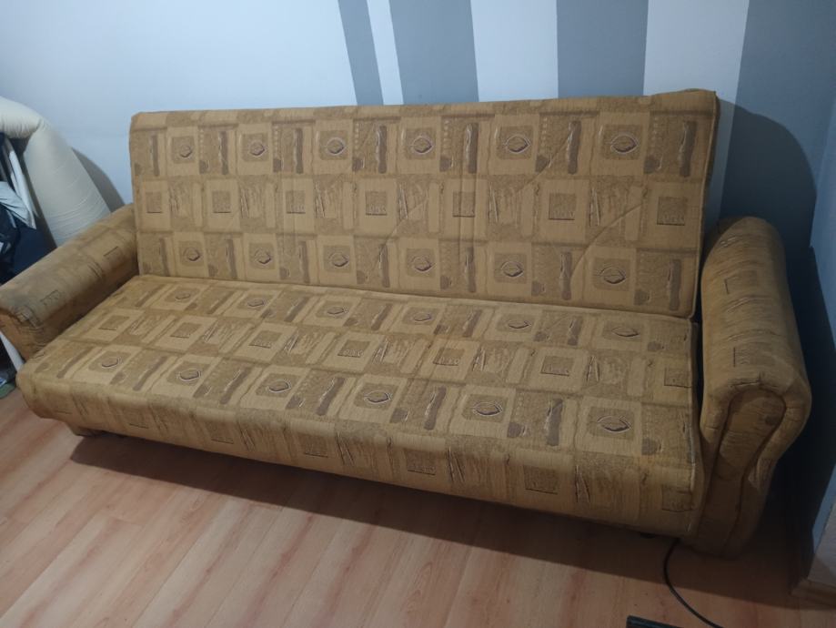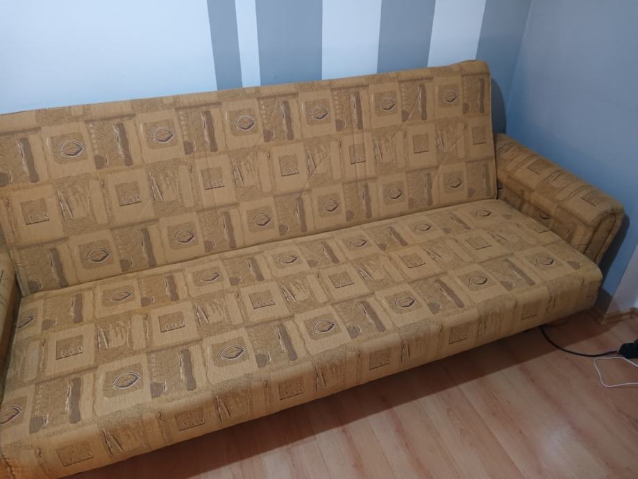 Prodajem KAUČ-TROSJED na razvlačenje u odličnom stanju,jako malo korišten,bio kao rezervni ležaj u vikendici,kvalitetna izrada nade in Makedonija,jednostavno se razvlači u udoban ležaj a ima i spremište(sanduk) za posteljinu. Bez ikakvih oštećenja,puno drvo,masivan i jako težak,pogodan za upotrebu kao udoban ležaj. Dimenzije u sklopljenom stanju kao trosjed su 220x110 cm a kao ležaj su dimenzije 190x130 cm. Kvalitetan klik-klak mehanizam,platno sa reljefnim uzorkom,sve sačuvano,ispravno i jako malo korišteno. Nalazi se u prizemlju stana pa se može lako transportirati,prije par godina kupljen i plaćen 1.599 kuna,proizvodnja Makedonija. Prodajem ga zbog preseljenja,nakon pregleda ispravnosti.