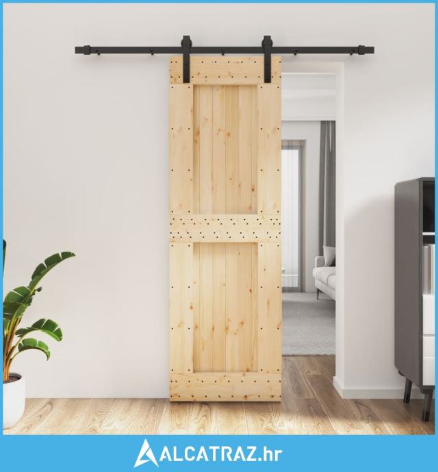 Klizna vrata s priborom za montažu 70 x 210 cm masivna borovina - NOVO