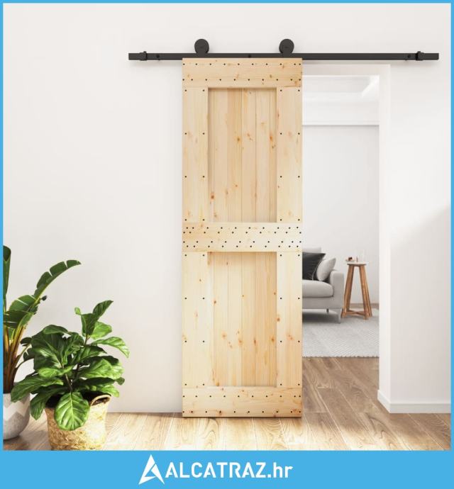 Klizna vrata s priborom za montažu 70 x 210 cm masivna borovina - NOVO