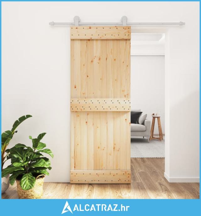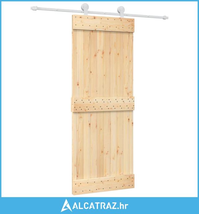 Klizna vrata s priborom za montažu 80 x 210 cm masivna borovina - NOVO