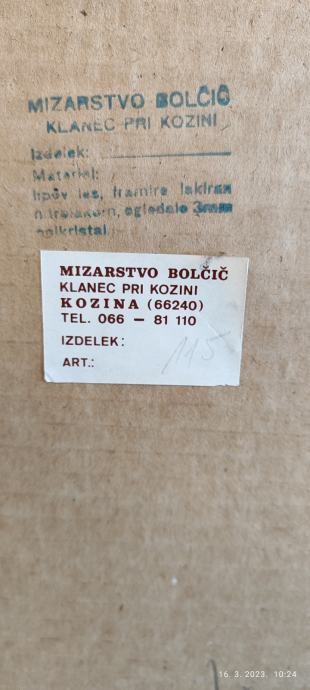 OGLEDALO IMA I SVOJU INTERESANTNU PRIČU . Isto je proizvedeno u majstorskoj radionici U Sloveniji i na poleđini se nalaze originalni podaci o proizvođaču te podaci koje se odnose na materijale od kojih je izrađeno kao i sam proces proizvodnje.