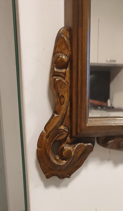 OGLEDALO RUČNO IZREZBARENOG DRVENOG OKVIRA( KVALITETNO DRVO ZA OKVIRE) U RUSTIKALNOM STILU TE SA KRISTALNIM STAKLOM KOJE DAJE POSEBAN IZGLED UMJETNIČKOG DJELA NAPRAVLJENO OD STRANE VRHUNSKOG UMJETNIKA -MAJSTORA.