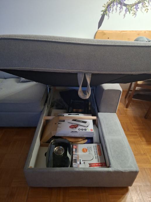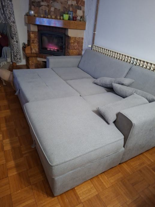Kutna garnitura u dobrom stanju,160×234, moze se pretvoriti u lezaj, i ima kutiju za pohranu stvari. U dva dijela, moze se lako rastaviti