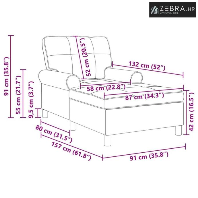 Prostor za sjedenje: 87 x 132 cm (Š x D)