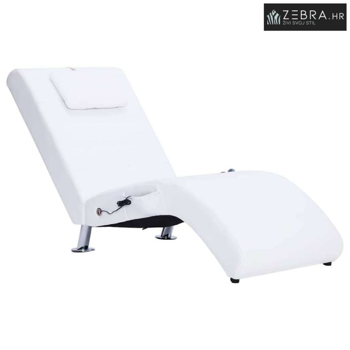 Masažna ležaljka od umjetne kože s jastukom bijela - Bijela 1