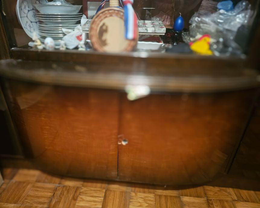 Kvalitetno drvo s vidljivim ostecenjima laka od koristenja i kvake.