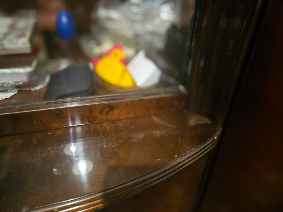 Staklo citavo s policama za izlaganje stvari.