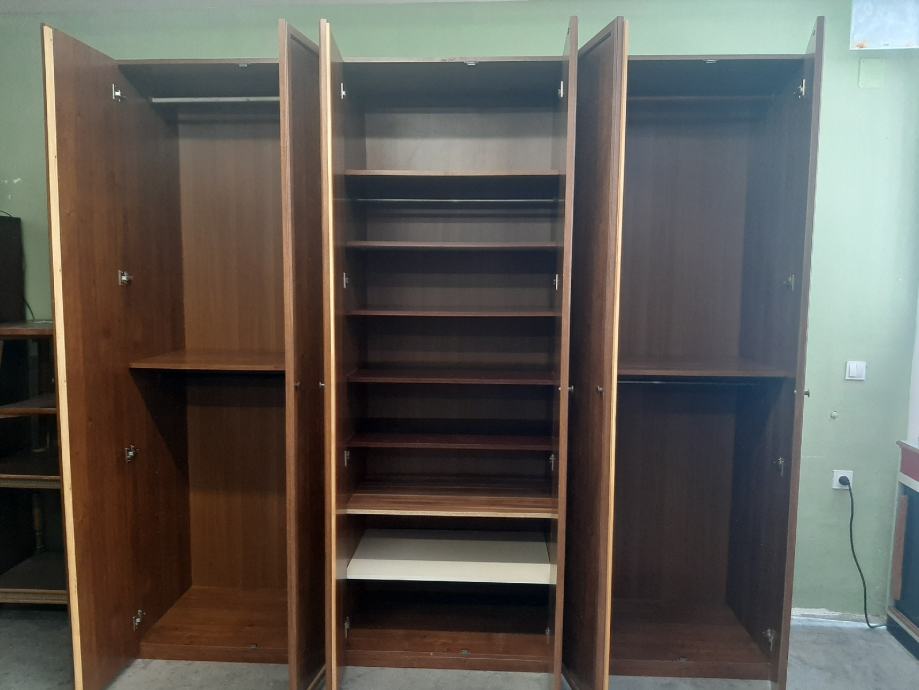 Šestokrilni ormar kombinacija polica i garderobnog dijela sa duplim ogledalima na sredini. Dimenzije ormara V 250, Š 270, D 60 cm. Dostava na području Ri besplatna.