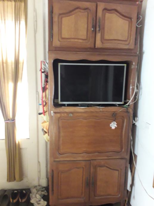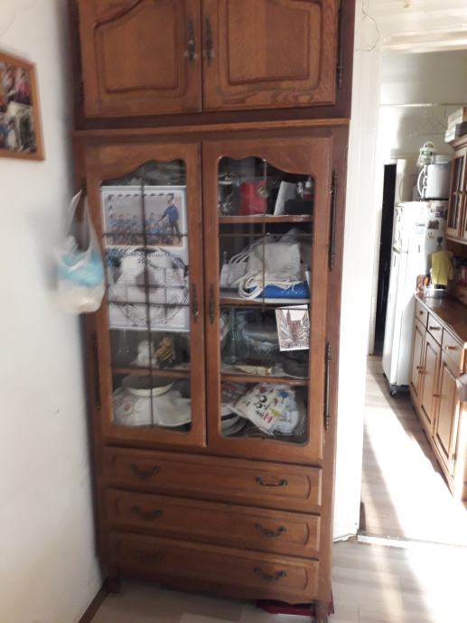 5 slika srednji stakleni dio ima 3 police za 4 reda stvari,donji 3 police za izvuc,gornji 1 policu za 2 reda stvari