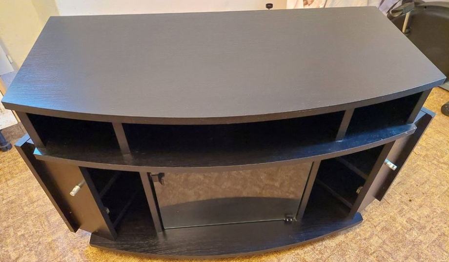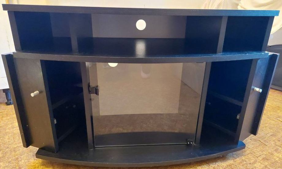 Crni ormarić, miniregal za dnevni, dimenzije 90cm/63cm/45cm sa staklenim vratima.