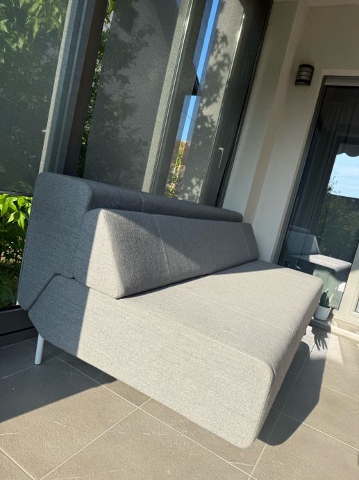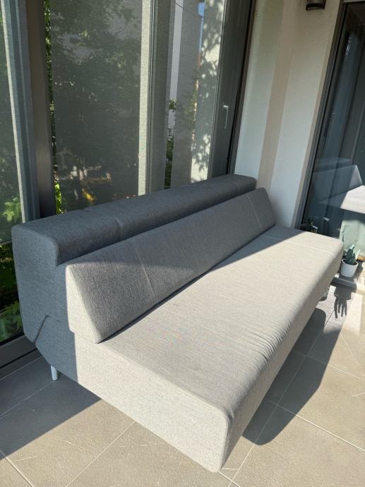 Garnitura je izuzetno očuvana i izgleda gotovo kao nova. Radi se o modelu koji se u trenu pretvara iz elegantne sofe u udoban krevet, a dodatni plus je skrivena ladica za pohranu posteljine ili drugih sitnica. U sjedećem položaju nudi visoku razinu udobnosti, a u rasklopljenom položaju pravi je ležaj na kojem se može kvalitetno spavati.