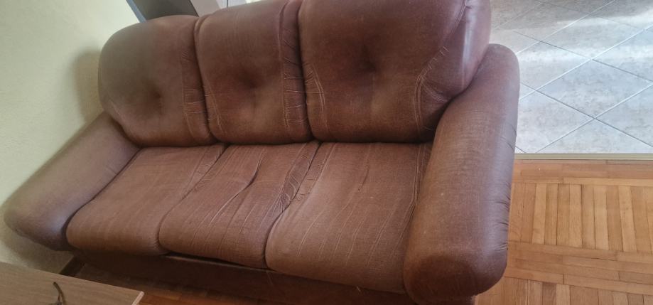 Rabljen trosjed na razvlačenje, pripadajuću fotelju i tabure poklanjamo. Sve je rabljeno no funkcionalno. Osobno preuzimanje, Kastav.