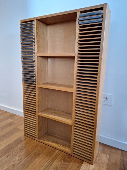Prodajem policu za CD/DVD medije (do 200 kom). Ručno izrađena od masivnog hrastovog drveta, dimenzija V: 93 cm, Š: 61 cm, D: 13 cm.