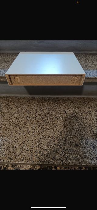 Mala drvena ikeina polica i metalan drzac za policu, bijele mat boje.