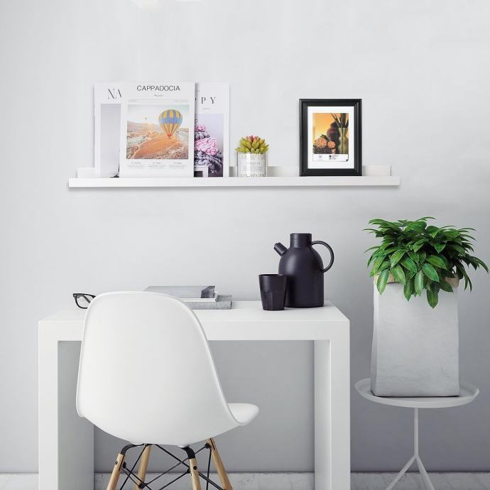 Ušteda prostora: Polica je prikladna za izlaganje okvira za slike, časopisa i malih ukrasa. Može se postaviti u kuhinje, kupaonice, dnevne sobe itd. kako bi se maksimalno iskoristio prostor i olakšalo izlaganje predmeta.