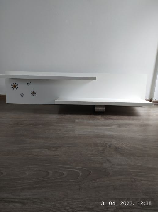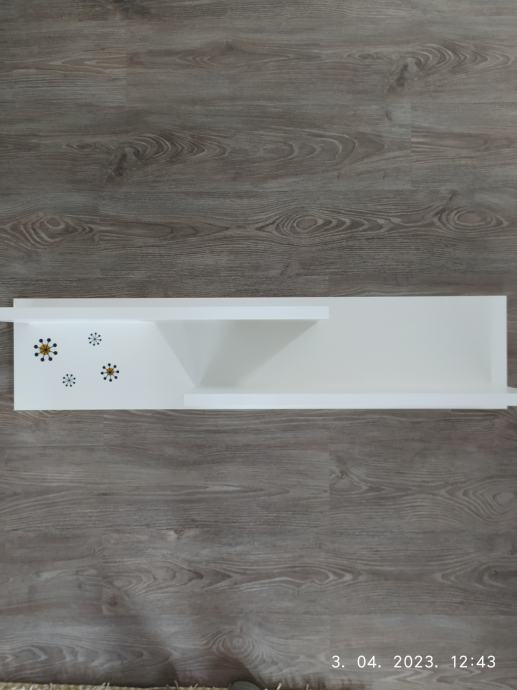 Bijela stalaža od 2 police, neoštećeno, montira se na dva tipla nevidljivo.