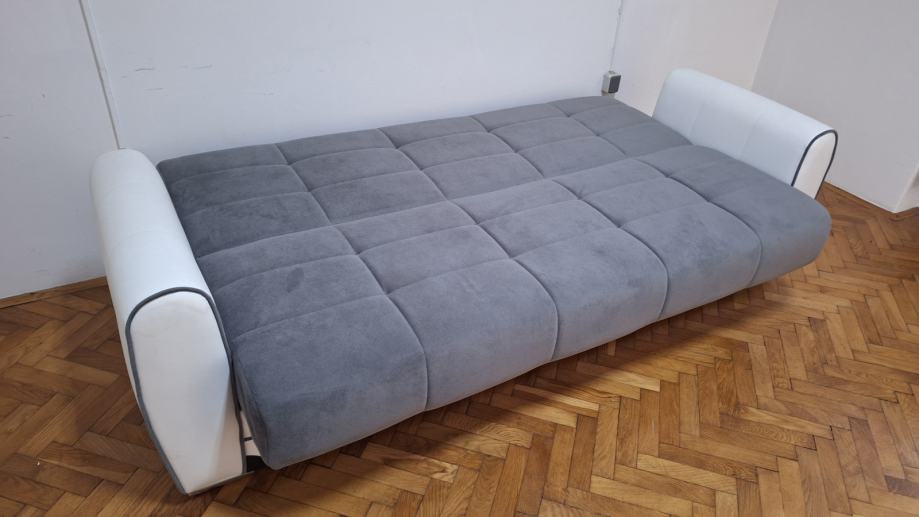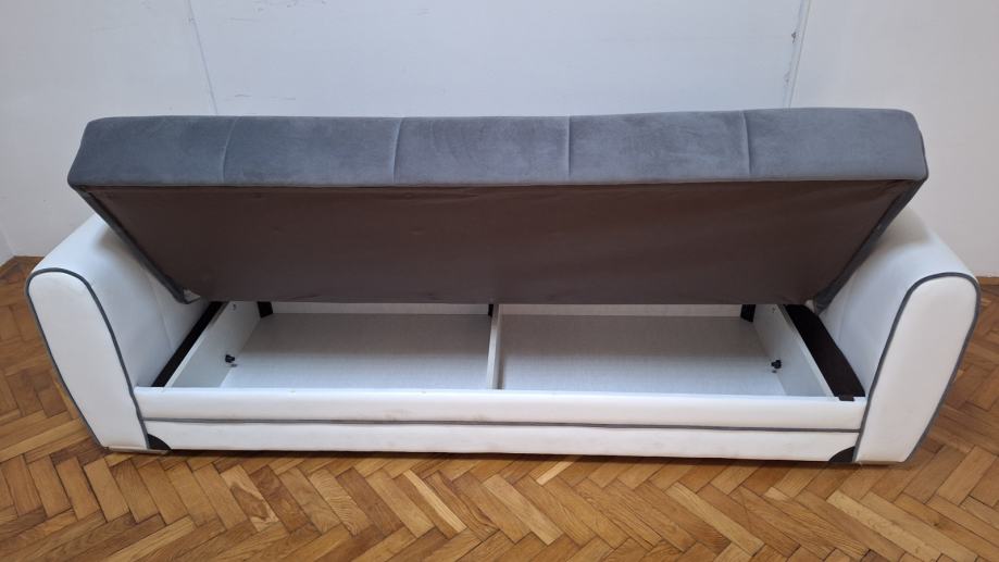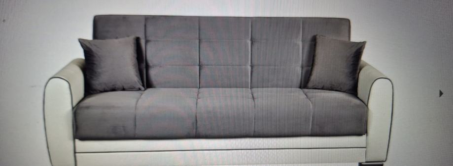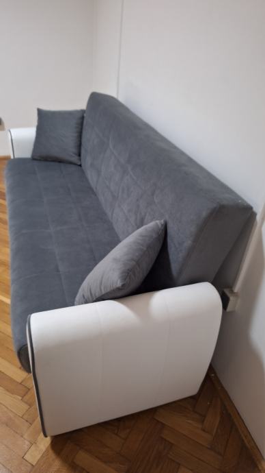 Jako lijep bijelo sivi trosjed s ležajem. Dimenzije su: 220x80x93cm, a dimenzija ležaja: 182x111cm.