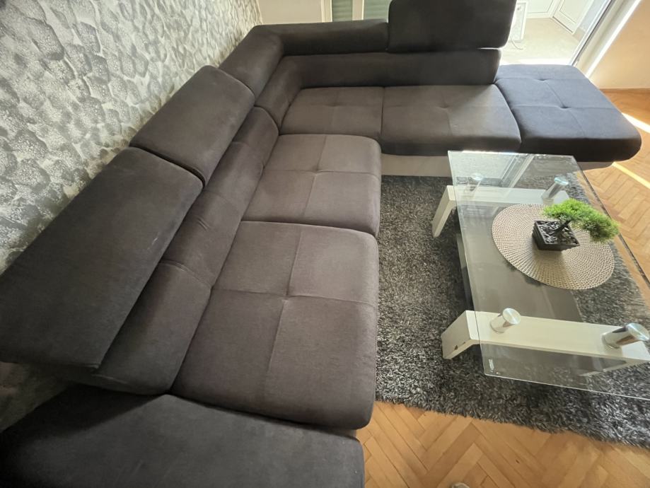 Radi preueređenja prodajem kauč ,kupljen u emmezeti (1500 eura ) ,skoro nov ,bez tragova korištenja ,razvlači se pa bude kao dodatni krevet po potrebi , boja tamno smeđa sa sivom, tkanina .